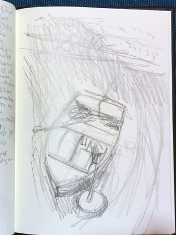 ← Skizzenbuch (7) und Blattspreite des Palmbäumchens (Fotos)