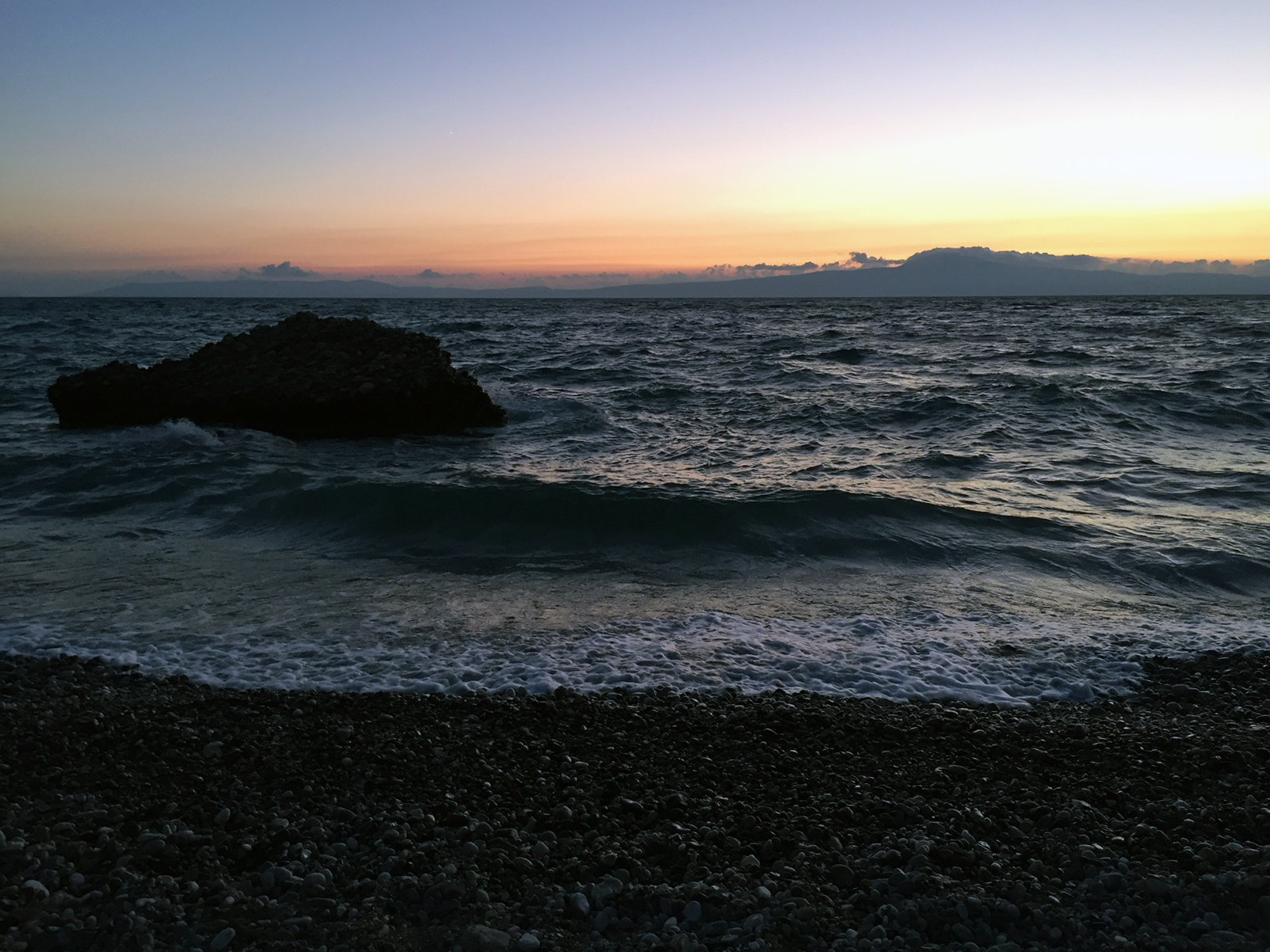 Abend am Strand, die Wellen gehen höher, der Mond ist noch nicht gekommen.