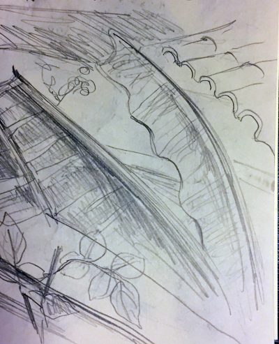 Die letzte Skizze mit den Hohlziegeln und dem Rand der Jalousie gefällt mir sehr.