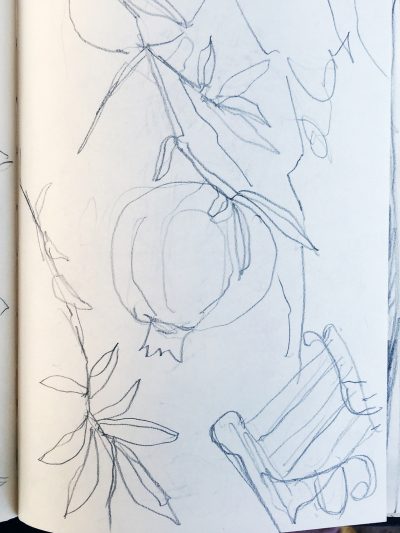 Skizzenbuch 10 : Lilie, Granatäpfel, Ölbäume, Feigenblätter und zwei Politiker.