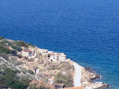 Diesmal wollte mein Sohn es sehen, und zusammen mit Hund Tito machten wir uns auf. Der Pfad vom Tempel bis zur Festung aus dem 5. vorschristlichen Jahrhundert ist steinig und abschüssig, aber die Anstrengung lohnt sich schon wegen des Blicks hintunter in die Schlucht, hinüber zu den verlassenen Häusern und in die Ferne, wo ein einsames Fischerboot vorüberzog.