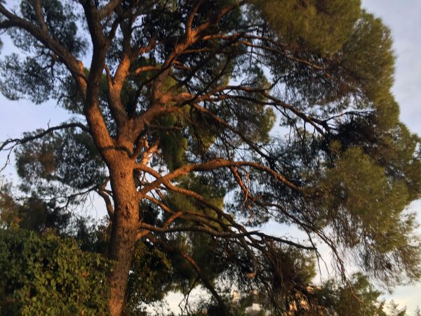 Maroussi-Alltag im Syngrouwald: Pinien, Menschen, Hunde und Frauenmantel