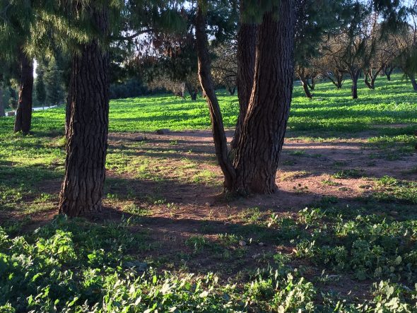 Maroussi-Alltag im Syngrouwald: Pinien, Menschen, Hunde und Frauenmantel