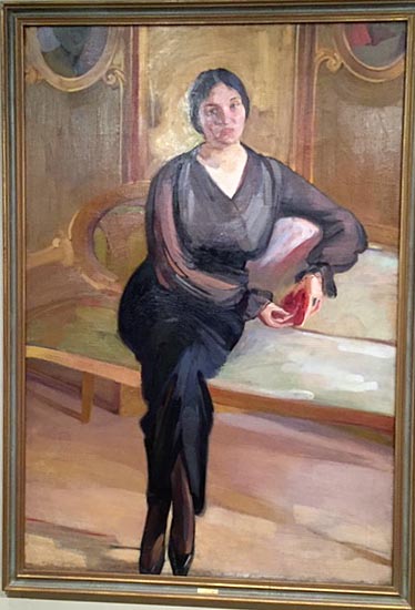Noch bis in die Mitte des 20. Jahrhunderts herrschen Motive und Malstile des 19. Jahrhunderts vor.  Iannis Moralis (1916-2009) portraitiert die elegante Ioanna Lourou (rechts) nicht viel anders als der viel ältere Konstantinos Lytras (1883-1927) ein paar Jahre zuvor die berühmte Schauspielerin Kyveli (links. Sie lebte von 1888-1978 und war u.a. mit dem griechischen Ministerpräsidenten Giorgos Papandreou, Vater von Andreas Papandreou, verheiratet).