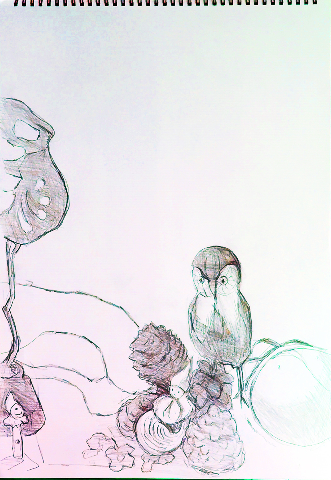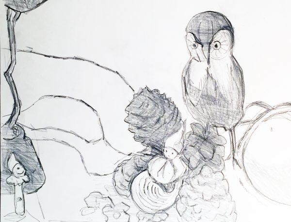 die Eule, ihr scharfer Blick gefällt mir auch, sie alleine zu sehen in einer Zeichnung als