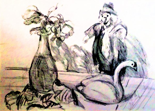 Tagtägliche Zeichnung: Der Schwan aus Filz schwimmt vorbei
