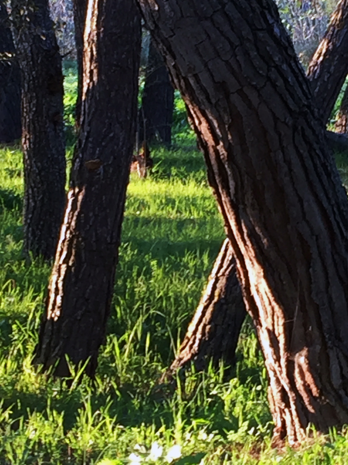 Eisig ist es geworden, der Wind hat mir Hände, Nase und Lippen fast abgefroren, als ich vorhin, schlecht gerüstet, mit meinem Hund im Syngrou spazieren ging. Gestern aber erfreute ich mich noch an den Sonnenflecken auf den Baumstämmen und den grüngrünen Teppichen aus Frauenmantel.