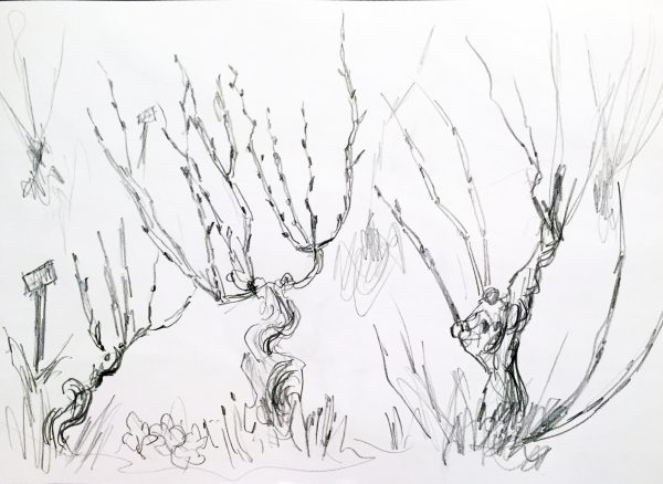 Pinie, Zypresse: Bleistiftzeichnung und digitale Versionen