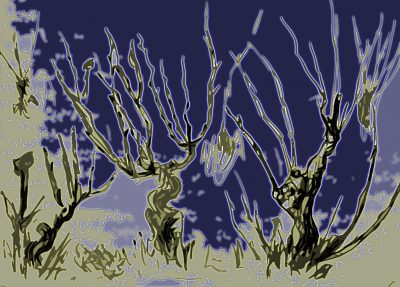 Pinie, Zypresse: Bleistiftzeichnung und digitale Versionen