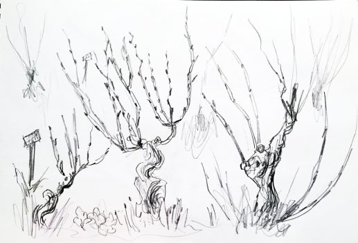 Pinie, Zypresse: Bleistiftzeichnung und digitale Versionen