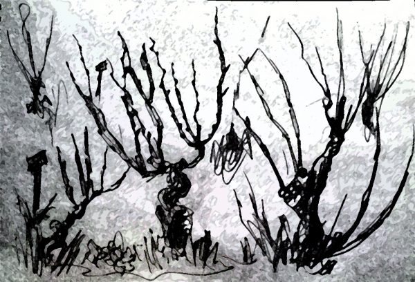 Pinie, Zypresse: Bleistiftzeichnung und digitale Versionen
