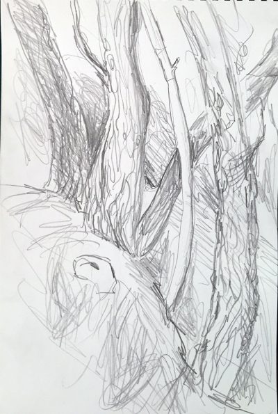 Pinie, Zypresse: Bleistiftzeichnung und digitale Versionen