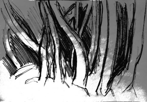 Pinie, Zypresse: Bleistiftzeichnung und digitale Versionen