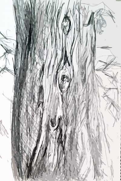 Pinie, Zypresse: Bleistiftzeichnung und digitale Versionen