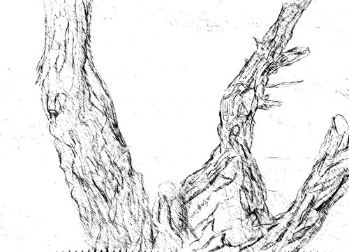 Pinie, Zypresse: Bleistiftzeichnung und digitale Versionen