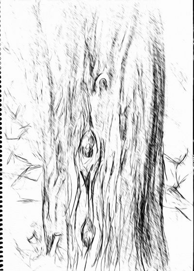 Pinie, Zypresse: Bleistiftzeichnung und digitale Versionen