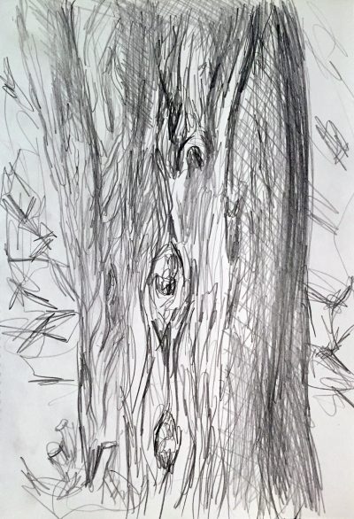 Pinie, Zypresse: Bleistiftzeichnung und digitale Versionen