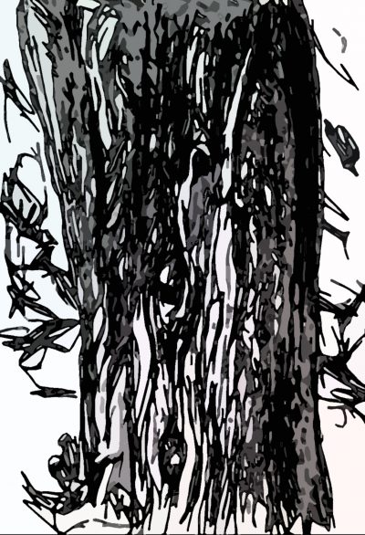 Pinie, Zypresse: Bleistiftzeichnung und digitale Versionen