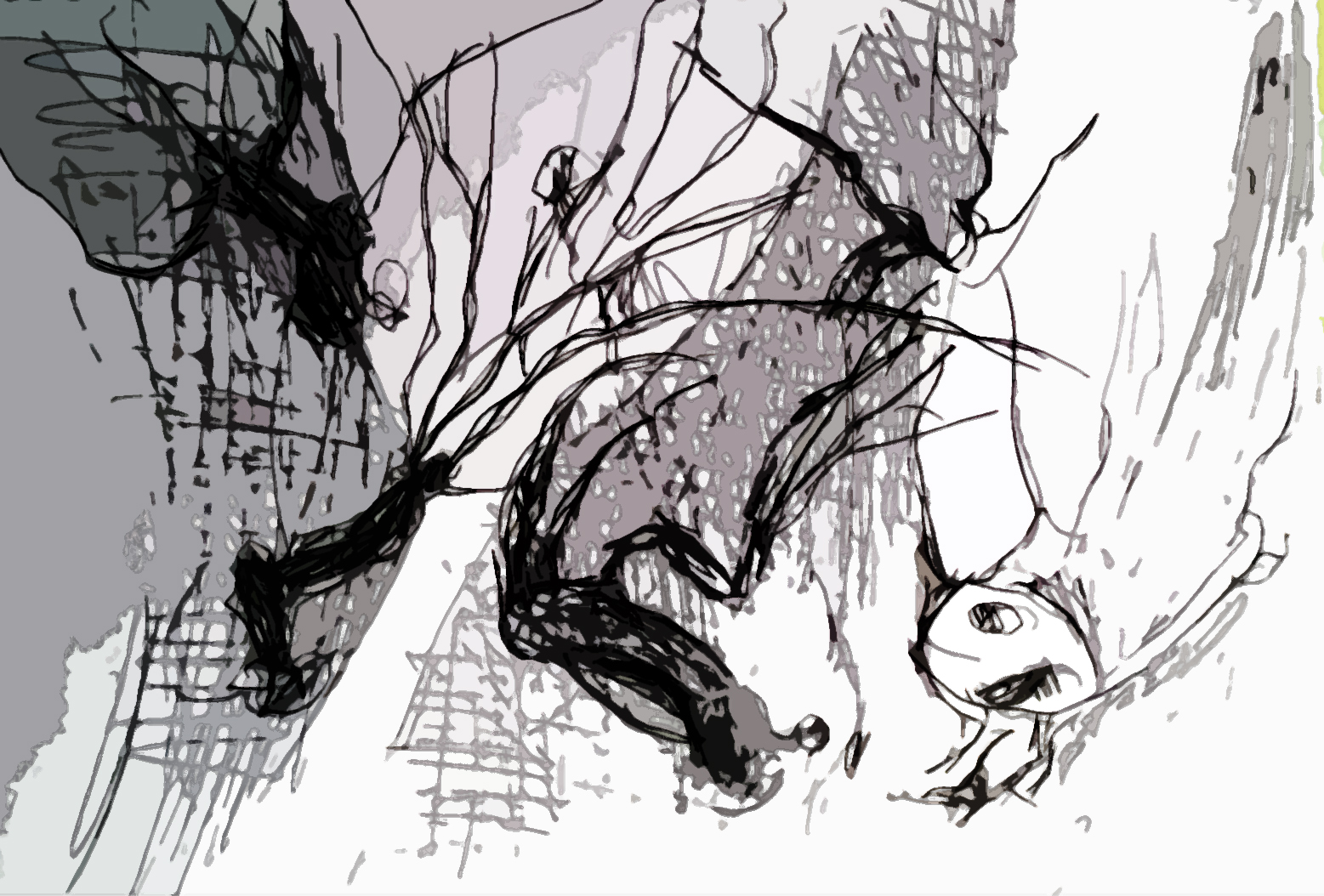 Es ist Viertel vor drei Uhr nachts. Habe zwei Skizzen bearbeitet, die ich heute im Syngrouwald machte. da die Zeichnungen beim Fotografieren ungleichmäig ausgeleuchtet waren, ergaben sich interessante Effekte, die ich bei der digitalen Bearbeitung nutzte.