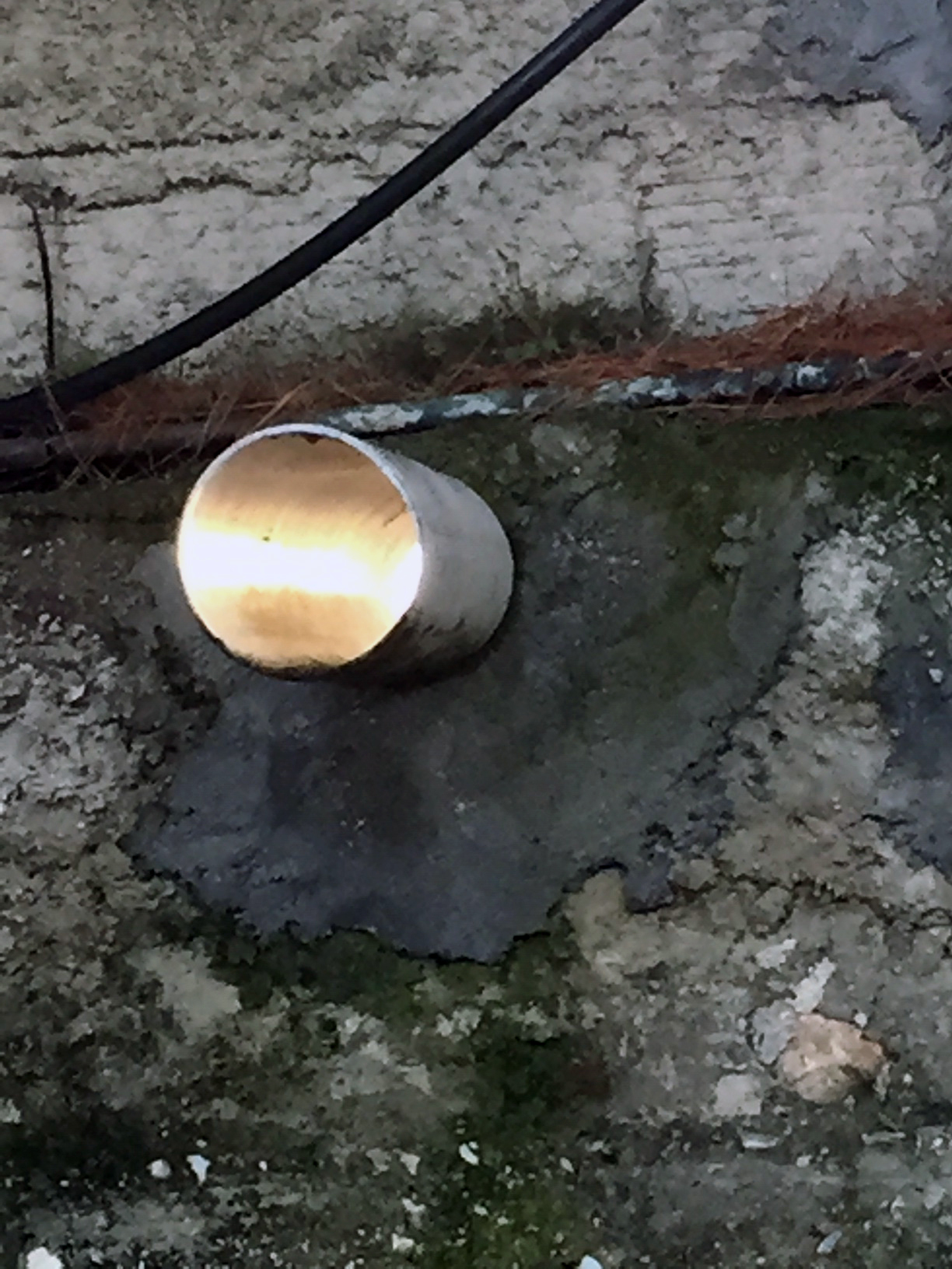 Tatsächlich lag das leicht geneigte Rohr genau in Augenhöhe, und die Abendsonne stand am anderen Ende des Rohrs und schaute mich an. Zwinkerte sie mir zu? Ich kann es nicht mir Bestimmtheit sagen, sie war einfach zu hell für mich.