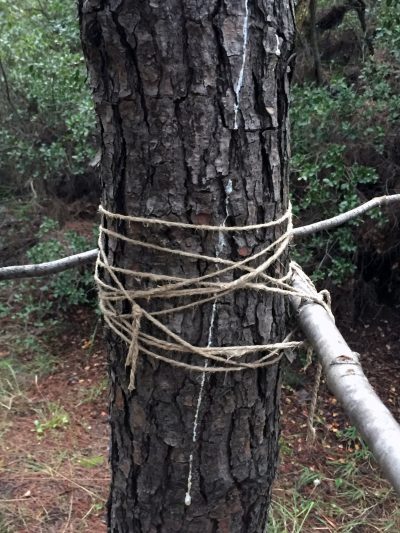 Baumwurzel-Skizze und Bauhütte