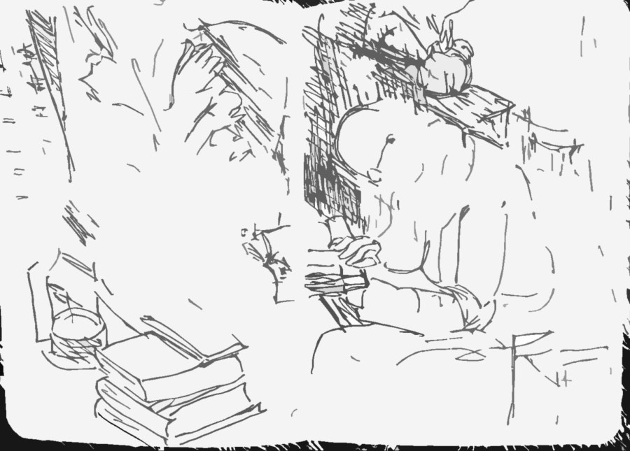 Ins Lesen vertieft (Tintenstiftskizze)