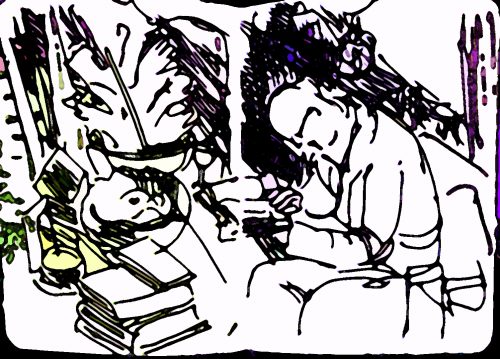 Ins Lesen vertieft (Tintenstiftskizze)