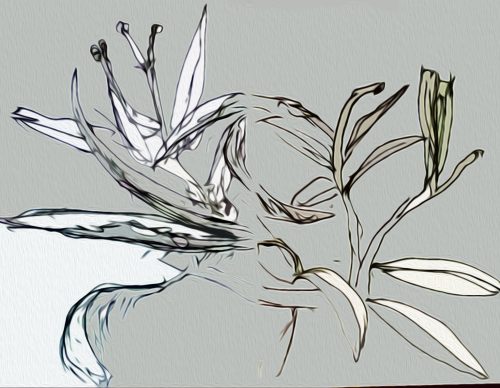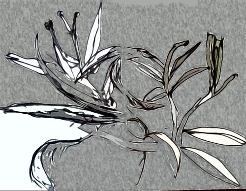 Die Bearbeitungen dieser Oleander-Zeichnungen haben für mich auch ihren Reiz, weil sie die Eleganz der Blätter und der Schoten, die sich stark verbiegen, um die Samen in die Welt zu entlassen, recht gut zeigen.