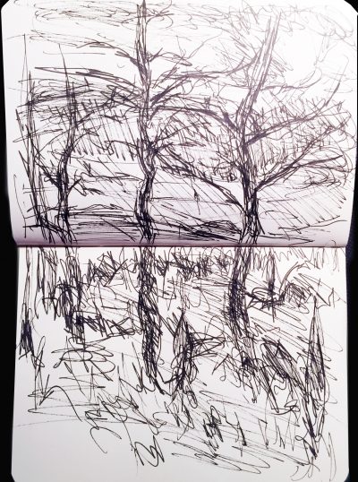 Im Wäldchen über Athen. Tintenstift-Skizze
