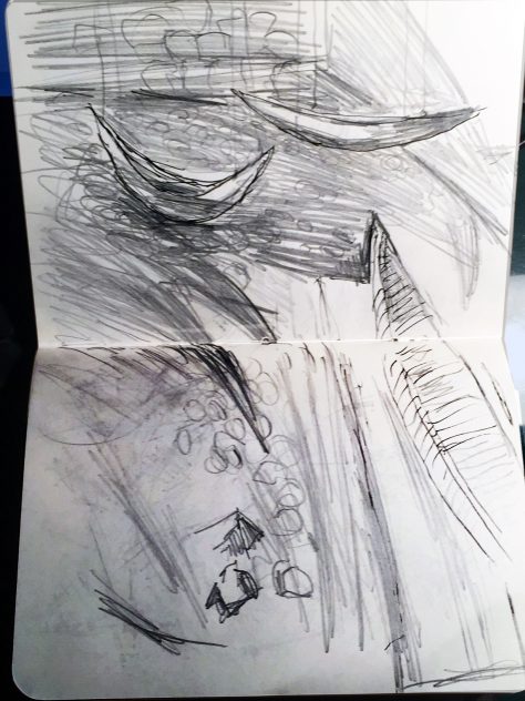 Schwebende Boote und Wald (Tintenstift, Bleistift im Vergleich)