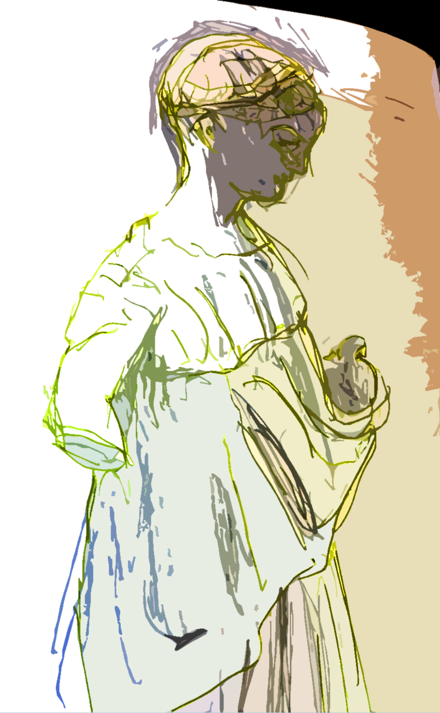 Vravron (Brauron): Drei Mädchen bringen Opfergaben (skizzieren, bearbeiten)