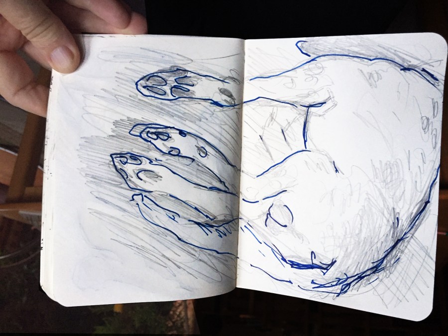Hundestudien mit Kuli, Bleistift und blauer Tinte
