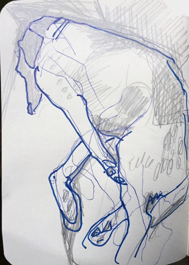 Hundestudien mit Kuli, Bleistift und blauer Tinte