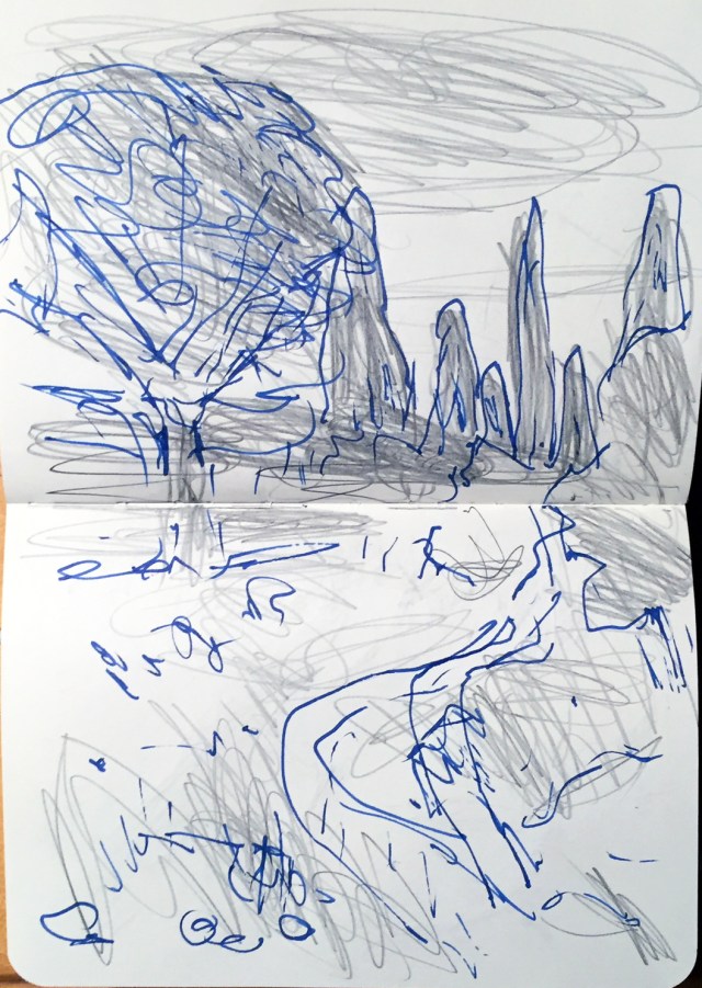 Meine gestrige Ausbeute: drei doppelseitige Skizzen (zum Vergrößern anklicken)….