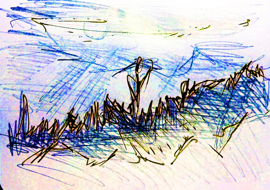 ← Skizzieren mit blauer Tinte und Bleistift, sowie Bearbeitungen