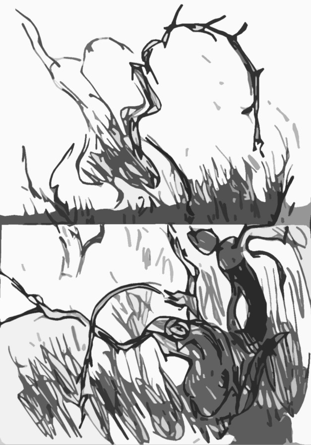 Skizzieren mit blauer Tinte und Bleistift, sowie Bearbeitungen