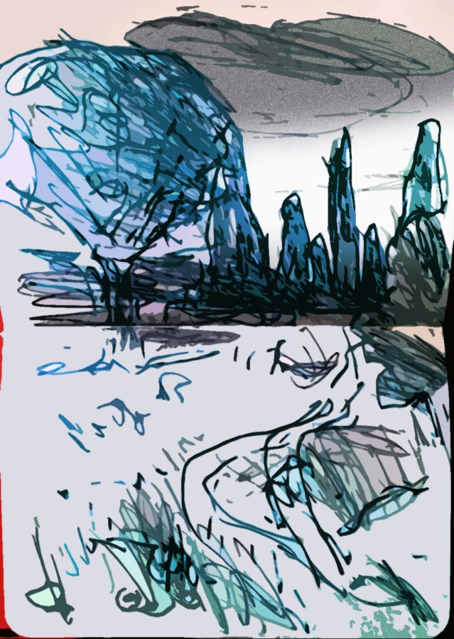 ← Skizzieren mit blauer Tinte und Bleistift, sowie Bearbeitungen