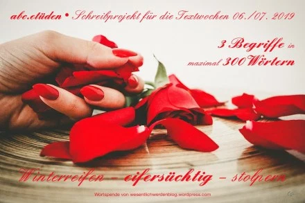 Wieder gehts um die abc-etüden, von Christiane betreut. Diesmal will Petra Schuseil wissen, ob unsereiner rund um die Wörter Winterreifen, eifersüchtig und stolpern eine Geschichte zusammenbringt, die nicht mehr als 300 Wörter hat. Nun, das ist eine einfache Übung, dachte ich, und begann zu reimen.