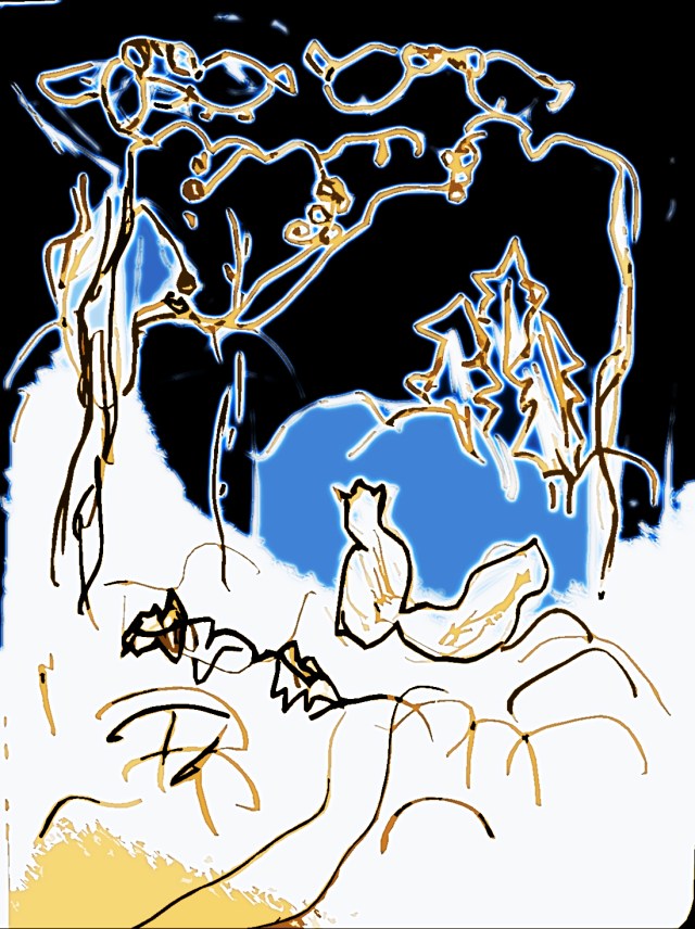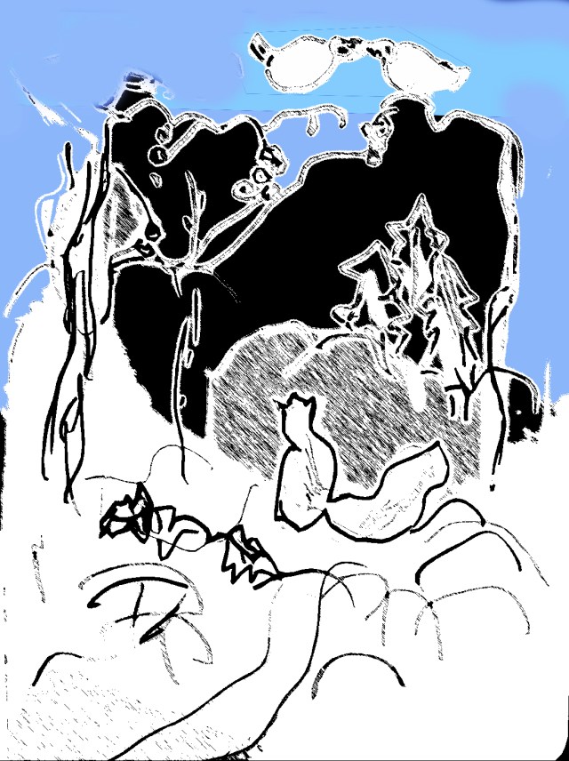 Ob das Füchslein wirklich so hungrig ist? Er ärgert sich m.E. mehr darüber, dass die Tauben turteln, als dass es nicht an die Trauben kann. Es fühlt seine Einsamkeit. Hätte es zum Trost jedenfalls ein paar Trauben, dann könnte es, wie so mancher Mensch, seine Trostlosigkeit durch Nachrungsaufnahme kompensieren. So aber geht ihm beides ab….