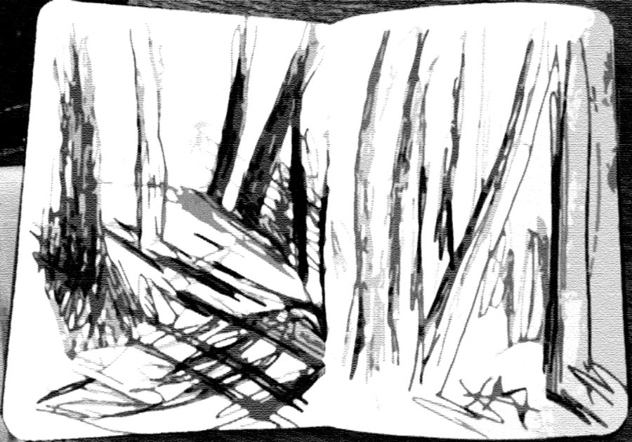 Bleistiftzeichnungen vom Wald – digitale Umformungen