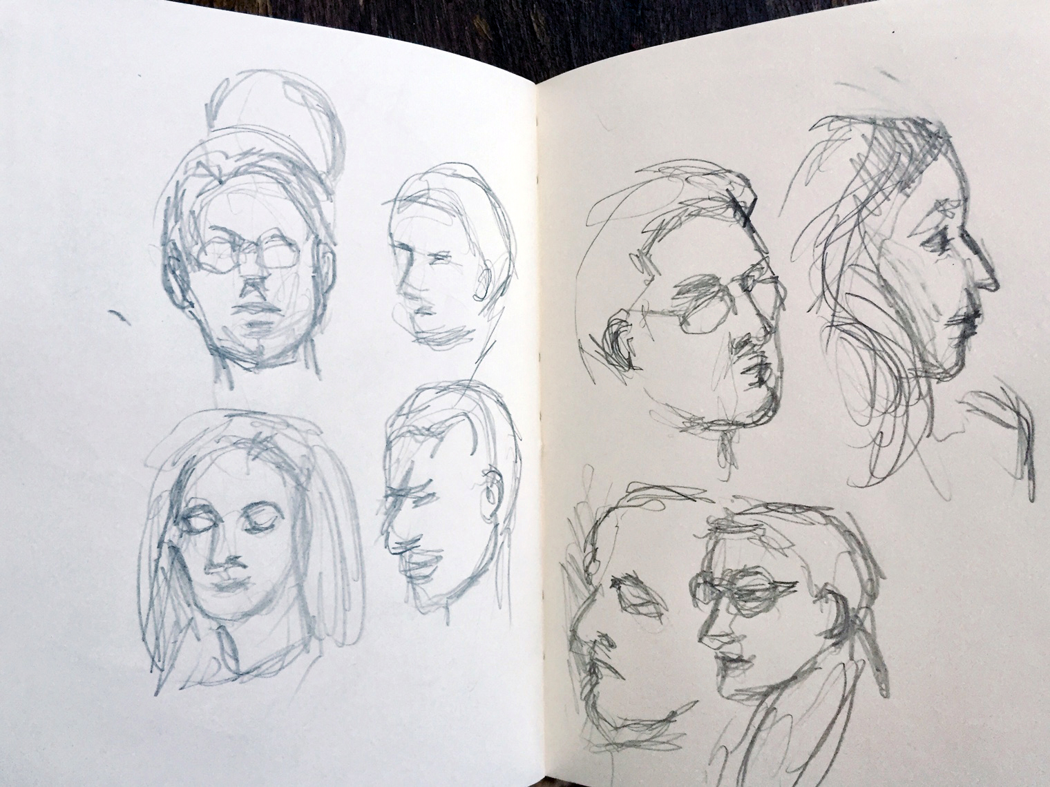 Das Skizzenbuch ist sehr klein, ich glaub, sogar die Frau neben mir hat nicht gemerkt, dass ich zeichnete. Nur als ich in ihre Richtung guckte, würde sie etwas unruhig.