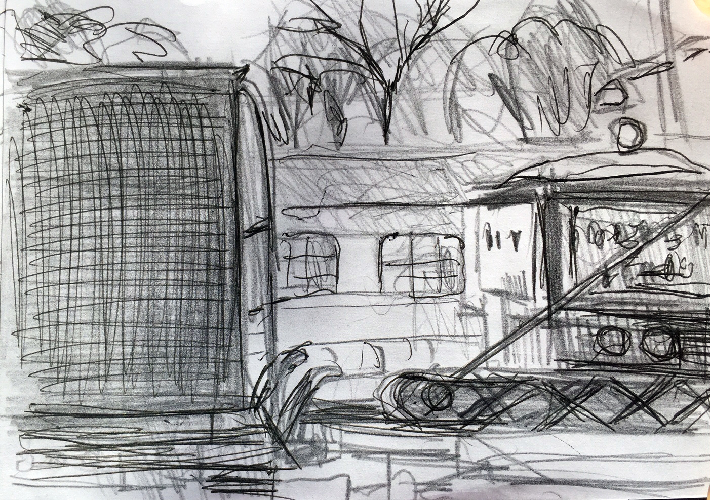 ← Skizzieren am Bahnhofsmuseum von Kalamata