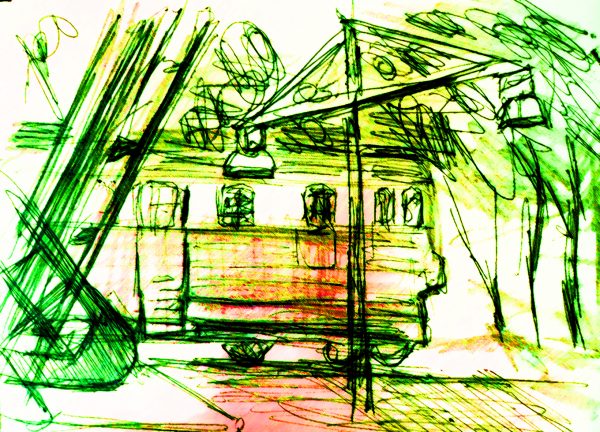 ← Skizzieren am Bahnhofsmuseum von Kalamata