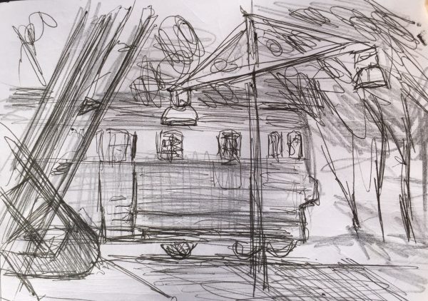 ← Skizzieren am Bahnhofsmuseum von Kalamata