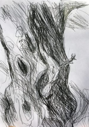 Original oder Bearbeitung? Zwei Olivenbaumstämme und Frühlingslichtbilder
