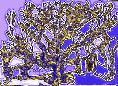 Im Olivenhain (zwei Zeichnungen und digitale Varianten)