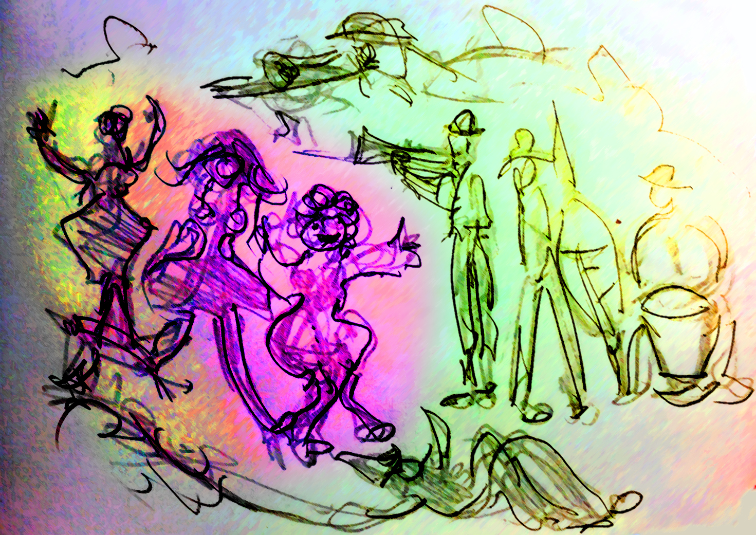Sie tanzen tatsächlich auf dem Bild. Immer wieder bin ich überrascht, wie lebendig Deine Zeichnungen sind. Diese hier ist dynamisch, rhythmisch, eben tanzend. Toll!