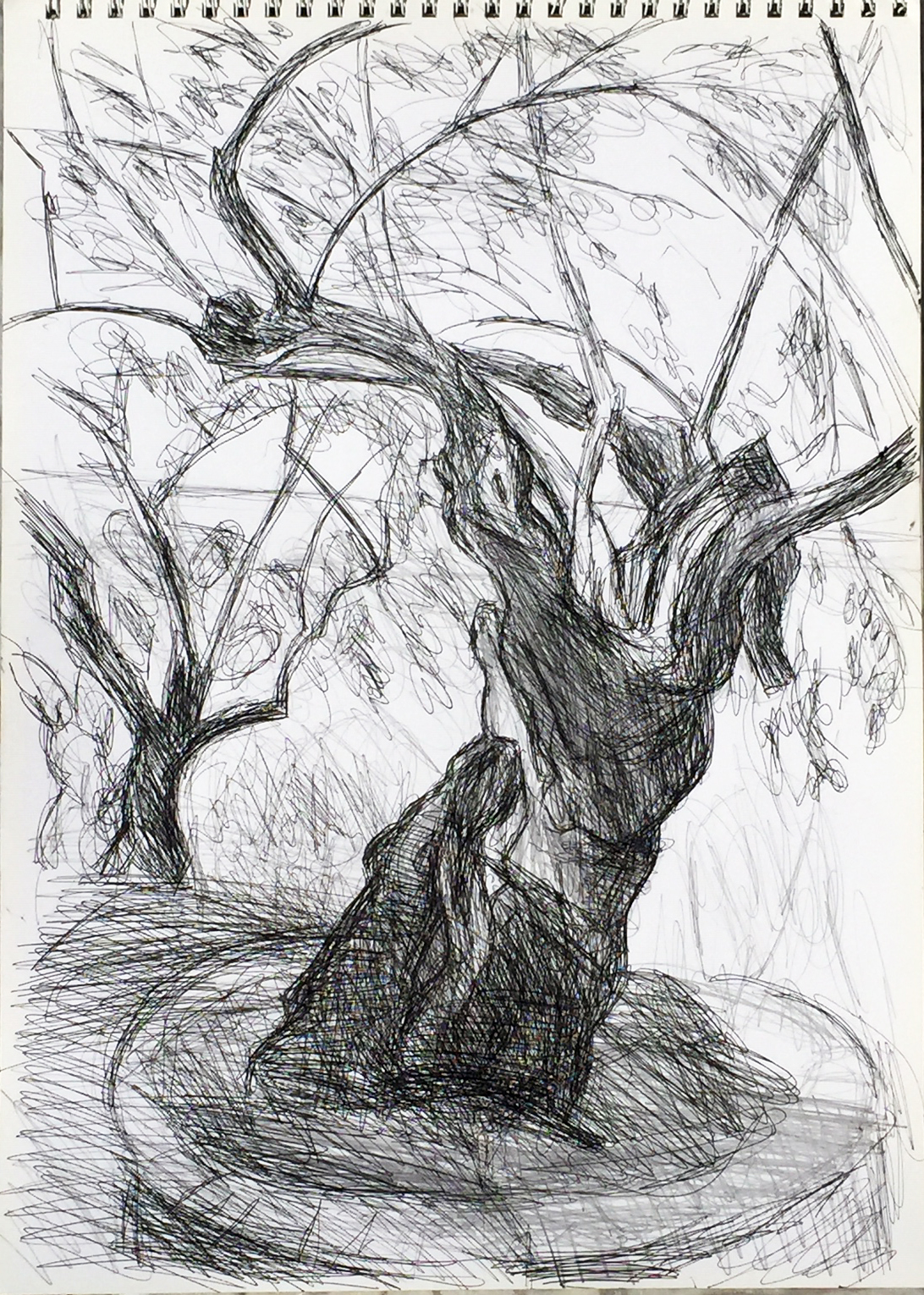 Ich finde ürigens, dass bei diesen Zeichnungen die Fotos, die ich im Halbschatten aufgenommen habe, besonders reizvoll wirken. Denn sie geben etwas von der tatsächlichen Atmosphäre wieder, in der ich die Bäume sehe und zeichne. Was meinst du?
