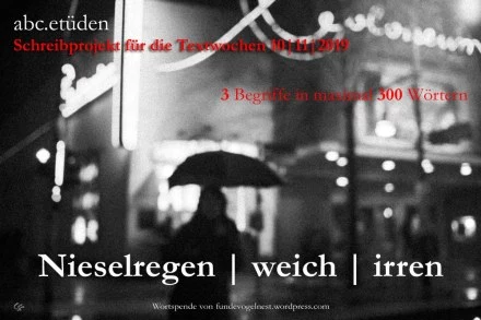Nieselregen, weich, irren – eigentlich drei sehr gut zusammenreimende Wörter. „Ich irrte im Nieselregen durch die aufgeweichten Wiesen“ oder „ich irrte, wenn ich meinte, der Nieselregen würde bald aufhören und einem sonnigen Tag weichen….“ – o ja, die Verbindung klappt. Sie klappt auch lautlich, zum Beispiel als Tanz von E und I: