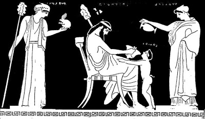 Daraufhin begann in Athen eine Art Manie: Ein junges Mädchen nach dem andern erhängte sich. Die verzweifelten Athener pilgerten nach Delphi und erfuhren, dass sie die Toten ehrenhaft bestatten, die Täter bestrafen und dem Gott ein Fest widmen sollten. So geschah es. Außerdem wurde eben hier ein Heiligtum mit Theater errichtet.
